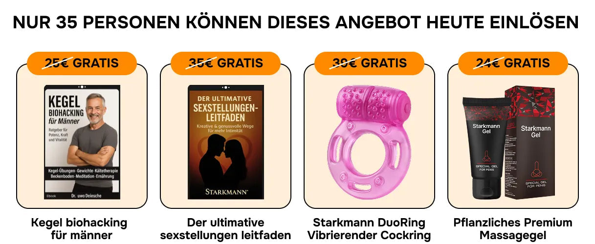 „Ich wollte nicht von Pillen abhängig werden und hatte Angst vor Nebenwirkungen. Mit Starkmann habe ich eine natürliche Lösung gefunden, die sich leicht in meinen Alltag einfügt. Bereits nach 3 Tagen habe ich gemerkt, wie Wärme- und Vakuumfunktion die Durchblutung im Intimbereich verbessern – und meine Partnerin hat es auch bemerkt.“